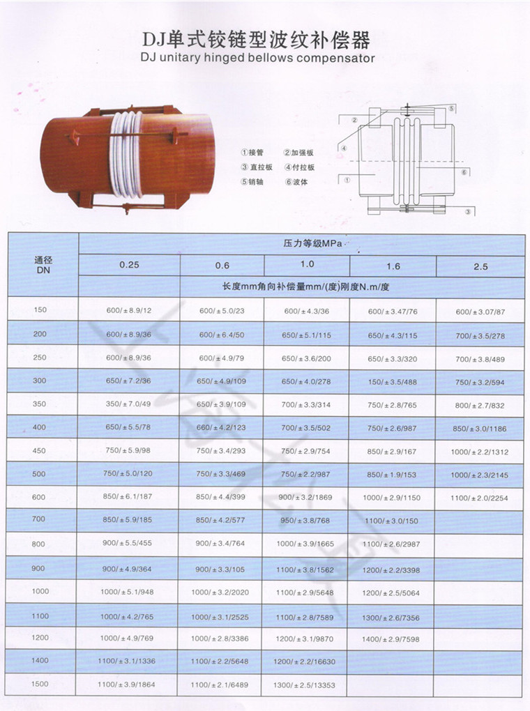 用途:鉸鏈型波紋補償器適用于角位移的補償連接方式:1、法蘭連接 2、接管連接產品角向補償量:±4度-±9度