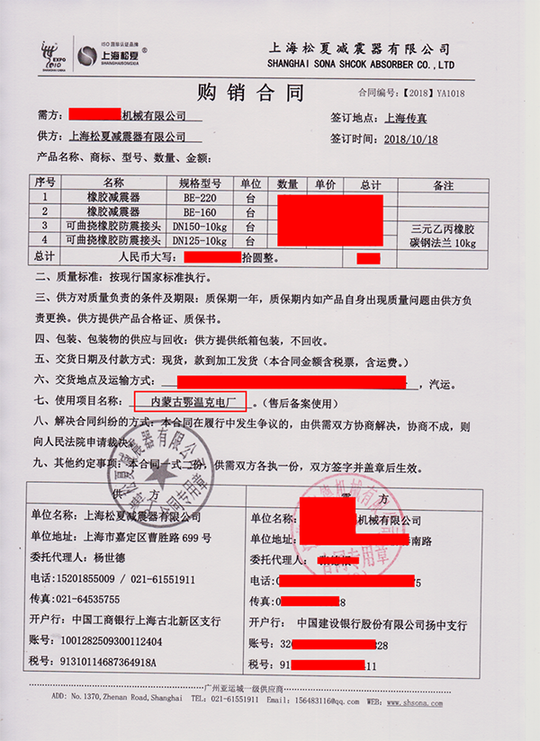橡膠接頭合同案例】銷售合同: