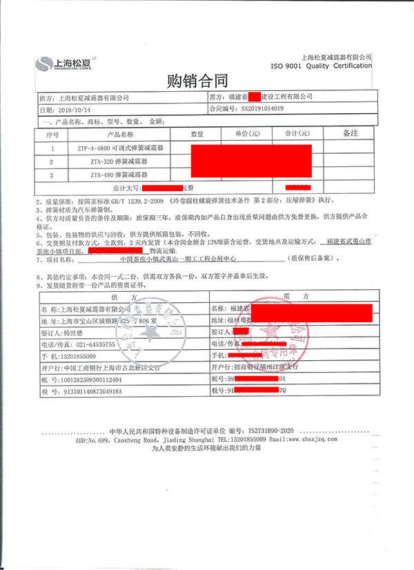 【中國茶旅小鎮(武夷山)會展中心】配套彈簧減震器合同