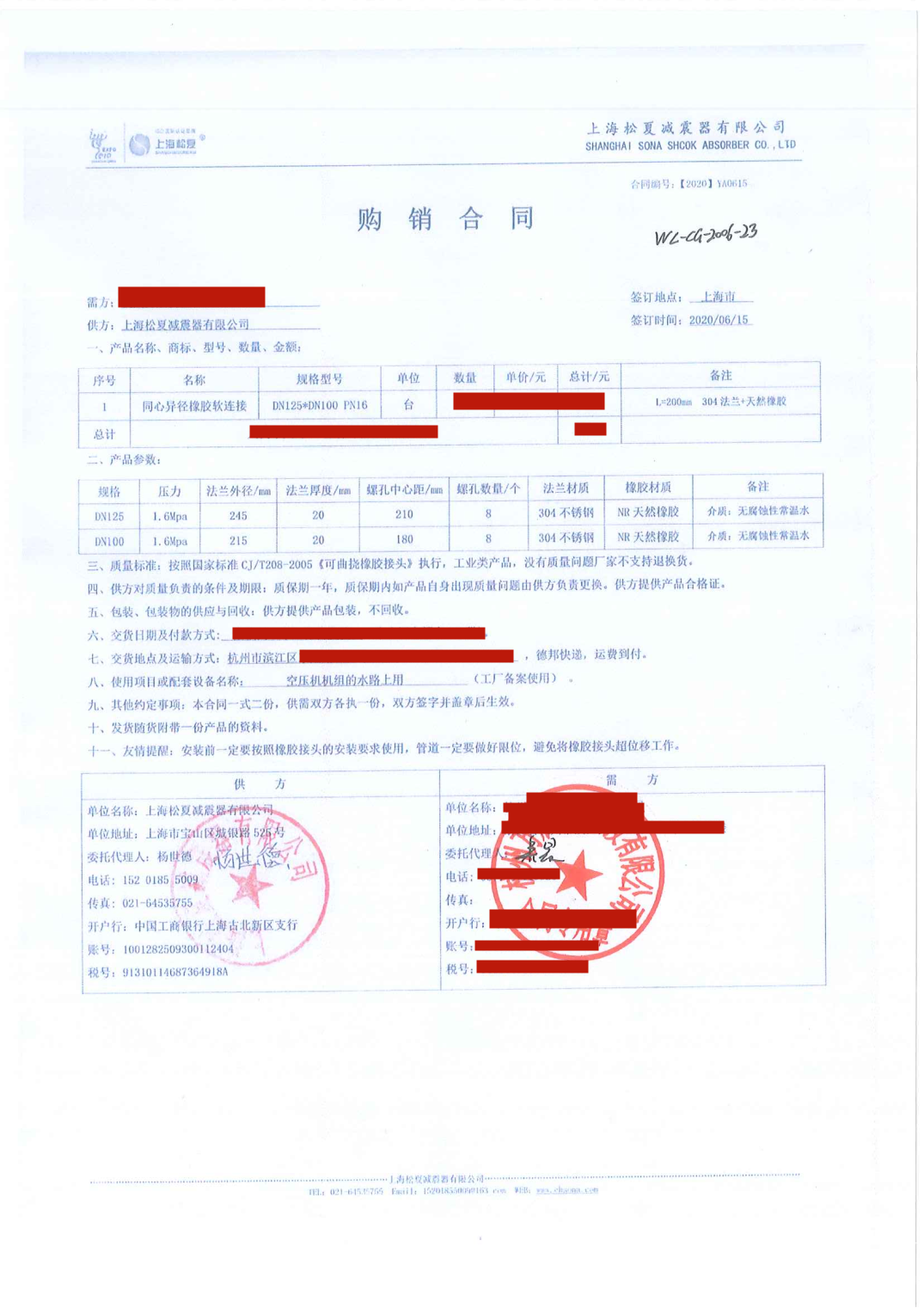 上海松夏減震器有限公司官方網站為您介紹:【空氣壓縮機機組配套】上海松夏DN125*100同心異徑橡膠接頭采購合同信息,我們松夏公司2020年為【空氣壓縮機機組配套】上海松夏DN125*100同心異徑橡膠接頭,起到了減震和降噪的作用,以下是【空氣壓縮機機組配套】上海松夏DN125*100同心異徑橡膠接頭采購合同介紹。